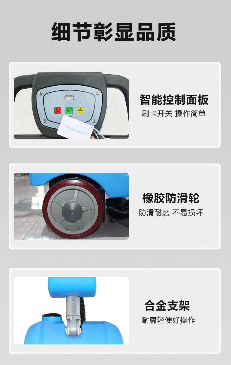 為什么要選擇洗地機做保潔呢 洗地機有各種的類型,有駕駛式洗地機、手推式洗地機各種不同規(guī)格型號的機器,因其功能齊全,操作方便,